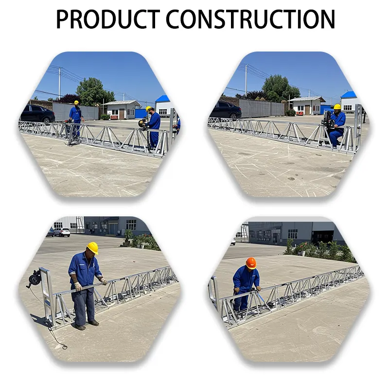 The 18M concrete floor Aluminum vibrating truss screed machine is a frame leveling machine with uniform speed, stable performance and adjustable length.