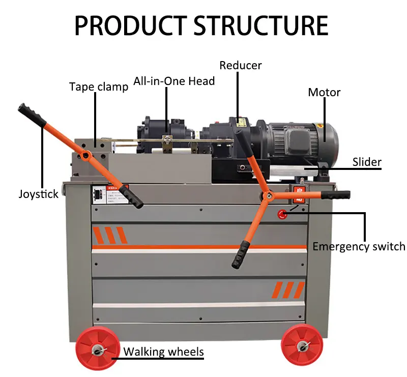The high quality 4.5KW rebar thread rolling machine is equipped with an automatic feeding system and a hydraulic clamping device. It is easy to operate and can quickly complete the processing of different specifications of steel bars. The overall structure is compact, the operation is stable, and it has the characteristics of high processing efficiency, good thread quality, and low energy consumption.