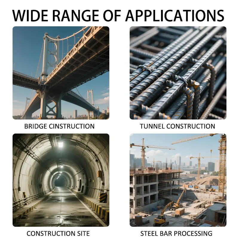 The 4.5KW rebar thread rolling machine is a key equipment for mechanical connection of steel bars in modern construction. It is widely used in various reinforced concrete structure projects. In large-scale projects such as high-rise buildings, bridges, and tunnels, it can efficiently complete the end-threading processing of main steel bars of beams and columns, as well as shear wall steel bars, achieving high-strength mechanical connection. In prefabricated component factories, it can batch-process the sleeve-connected steel bars required for prefabricated buildings. And is also applicable to special projects with strict requirements for steel bar connection quality, such as subway pipe galleries and nuclear power projects.