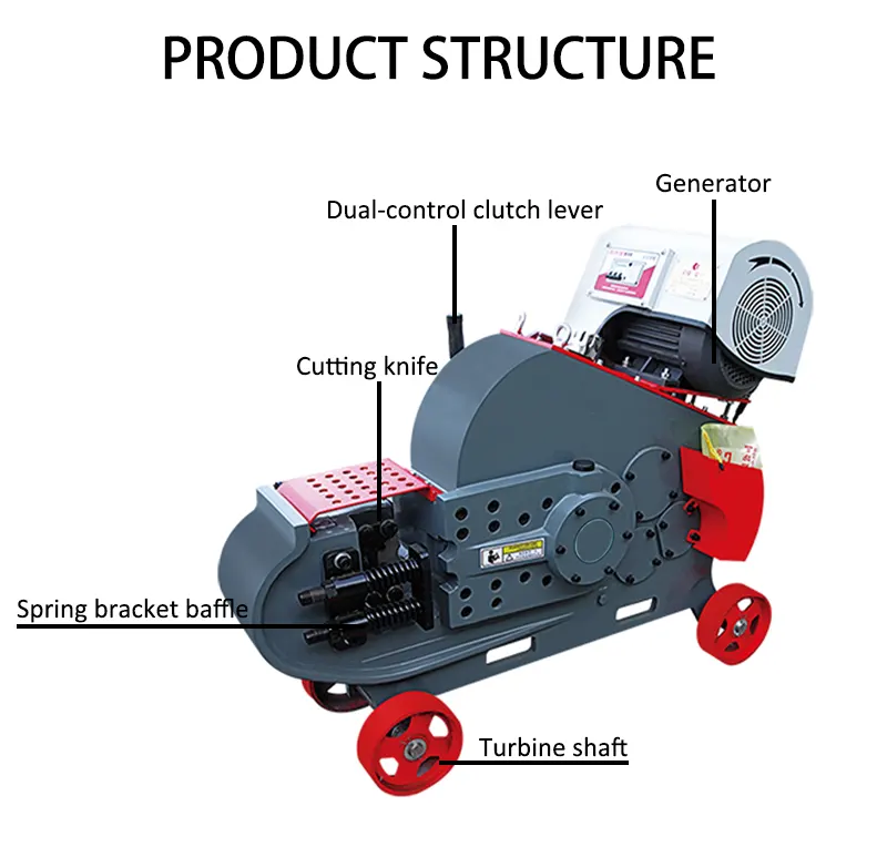 This high quality 4KW 40mm II steel bar cutting machine and has a powerful 4-kilowatt motor; it is equipped with alloy steel blades, resulting in smooth and undistorted cuts; the hydraulic clamping system ensures the stability of the steel bars, and 4KW 40mm II steel bar cutting machine is also equipped with a splash-proof cover, overload protection and emergency braking functions, which are safe and reliable; the heavy-duty steel structure body has strong impact resistance and is suitable for long-term use in harsh construction environments.