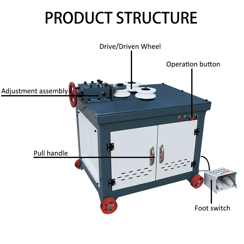 The 4KW steel bar arc bending machine A boasts advantages such as high efficiency, low energy consumption, and high precision, making it an essential equipment for steel bar bending processing. It helps enhance engineering quality and optimize construction costs. Its operation control console is a fully metal structure sturdy operation platform, which ensures a longer lifespan. The variable-speed pulleys make speed adjustment more convenient, rapid, and efficient. This product is equipped with button switches and foot switches, making the operation safer and more convenient.